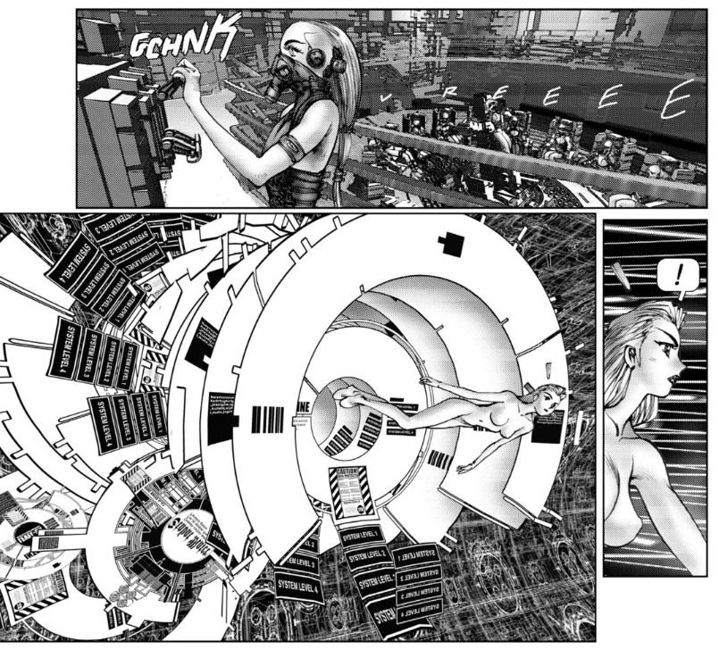 Si l’histoire racontée reste intéressante, à défaut d’être limpide, difficile de ne pas se dire que le mangaka semble parfois surtout chercher une excuse pour dessiner de belles femmes flottant dans le cyberespace dans des positions lascives ou combattant des cyborgs tout en montrant leur petite culotte. Shirow, pervers cyber-pépère ?