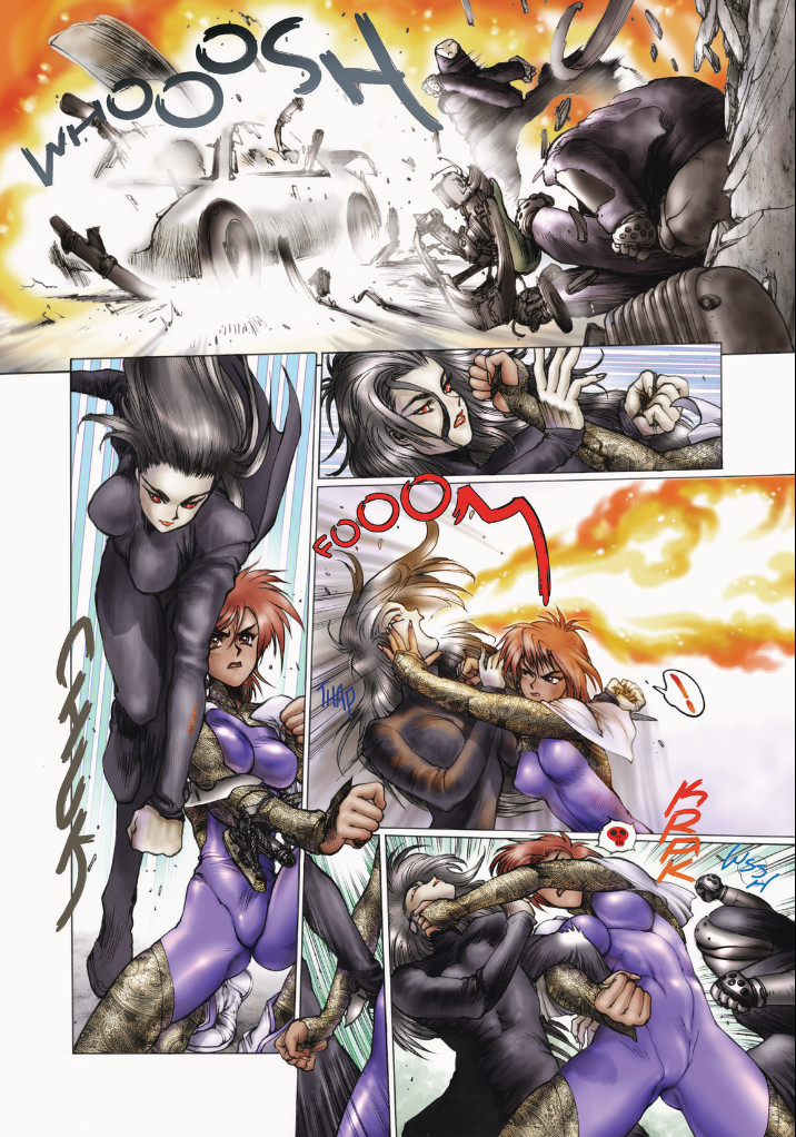 Pourtant, dès l’avant-propos, Masamune Shirow s’excuse que Man-Machine Interface ne soit en réalité pas une “vraie” suite à Ghost in the Shell (ou en tout cas pas la suite que les fans attendaient) mais plutôt une série avec un style et une ambiance très différents basée dans le même univers. Alors que Ghost in the Shell était un polar cyberpunk, Man-Machine Interface est quant à lui davantage un récit d’action et d’espionnage aux thèmes transhumanistes et mystiques, se déroulant principalement dans le cyberespace.