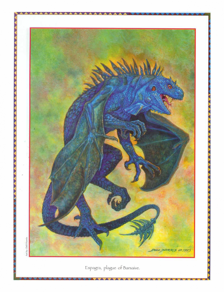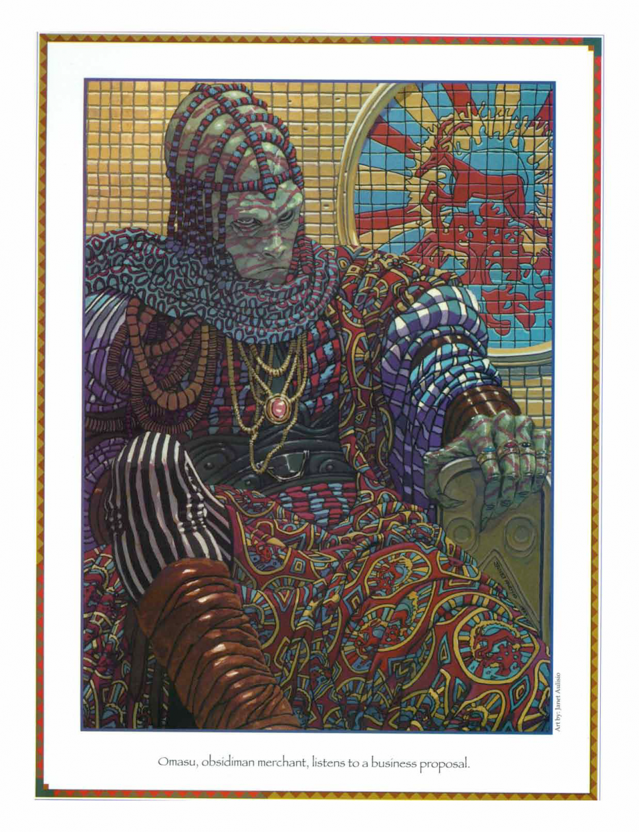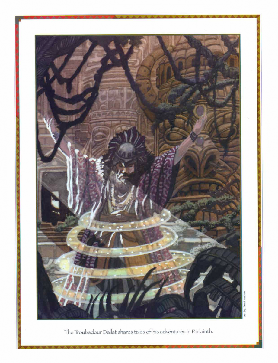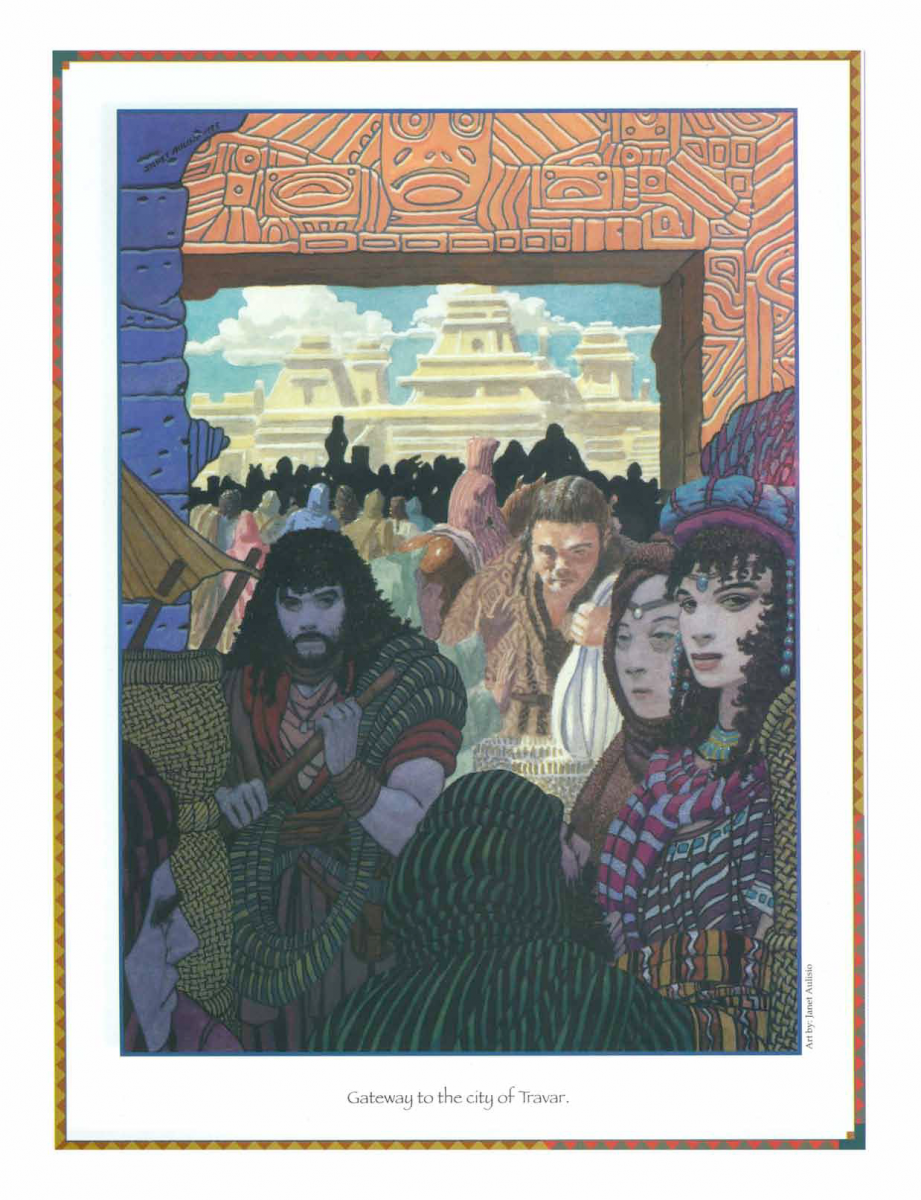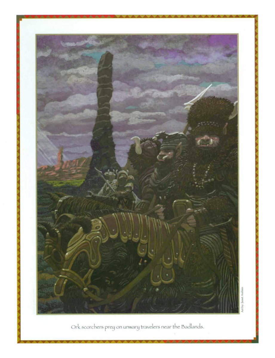 La première édition d’Earthdawn avait la particularité de proposer, dans ses principaux suppléments, plusieurs pages d’illustrations en couleur. Ces illustrations étaient réalisées par des artistes aussi talentueux que Jeff Laubenstein, Janet Aulisio, Jim Nelson, Tom Baxa, Clint Langley…